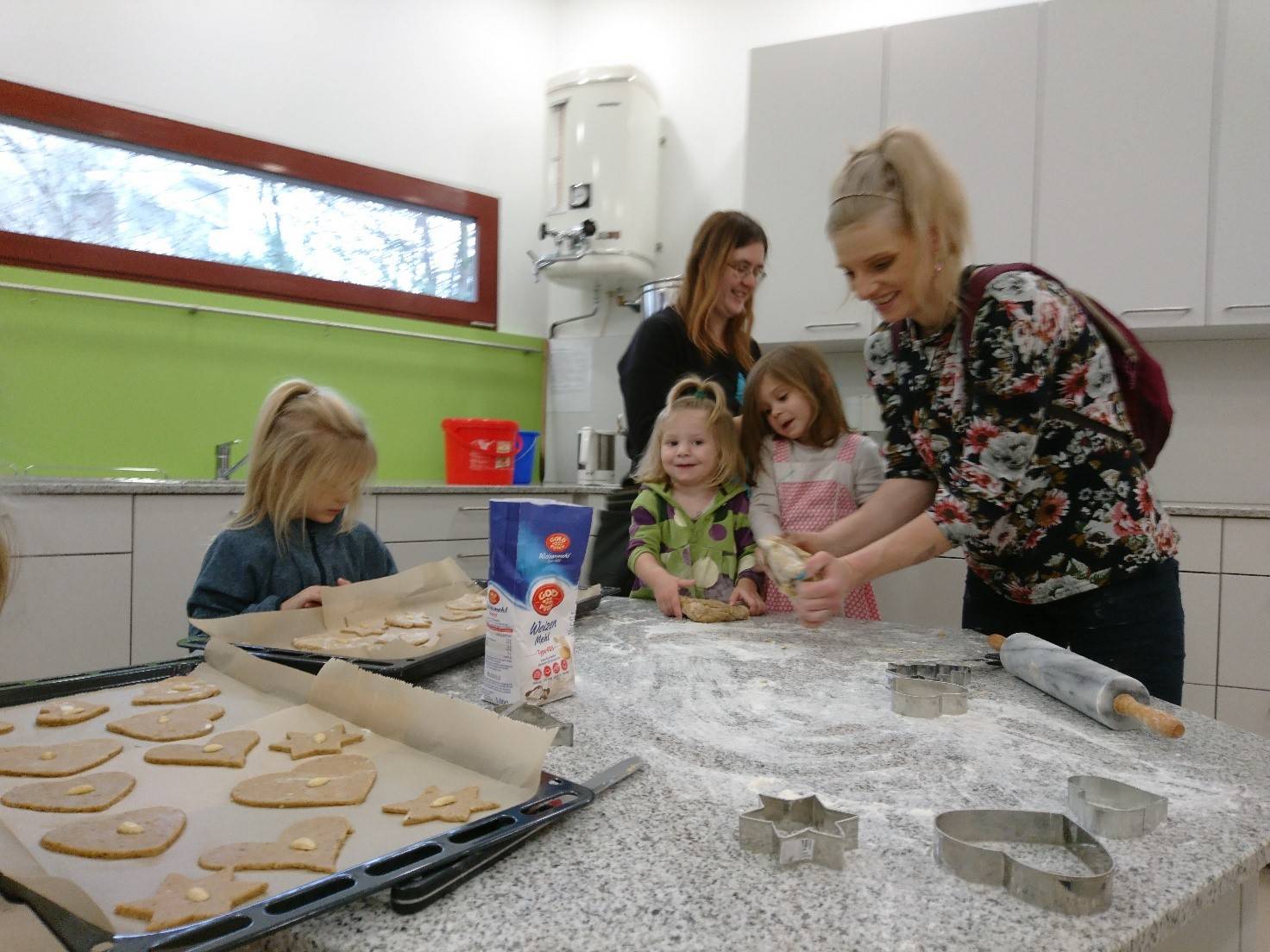 Großer Andrang herrschte dann am 15. Dezember 2023 in der Weihnachtswerkstatt im Gemeindehaus: Es wurde in drei Räumen parallel eifrig „gearbeitet“: Im kleinen Saal konnte man verschiedene Sterne aus Papier und Holz basteln, in der Küche entstanden leckere Lebkuchen und im großen Saal zogen Große und Kleine begeistert Kerzen in allen Farben.