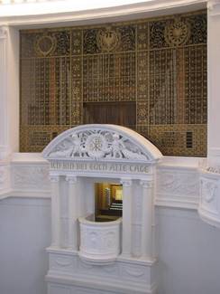 Bereits die erste Orgel der Christuskirche, ein romantisch disponiertes Instrument der Durlacher Firma Voit befand sich mitsamt dem Spieltisch in dieser komplett vom Kirchenraum getrennten Nische.